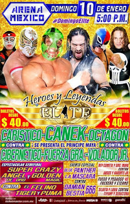 Canek hará equipo con Carístico y Octagón para enfrentar a Cibernético, Fuerza Guerrera y Volador Jr. La función está programada para el 10 de enero a las 5 de la tarde.